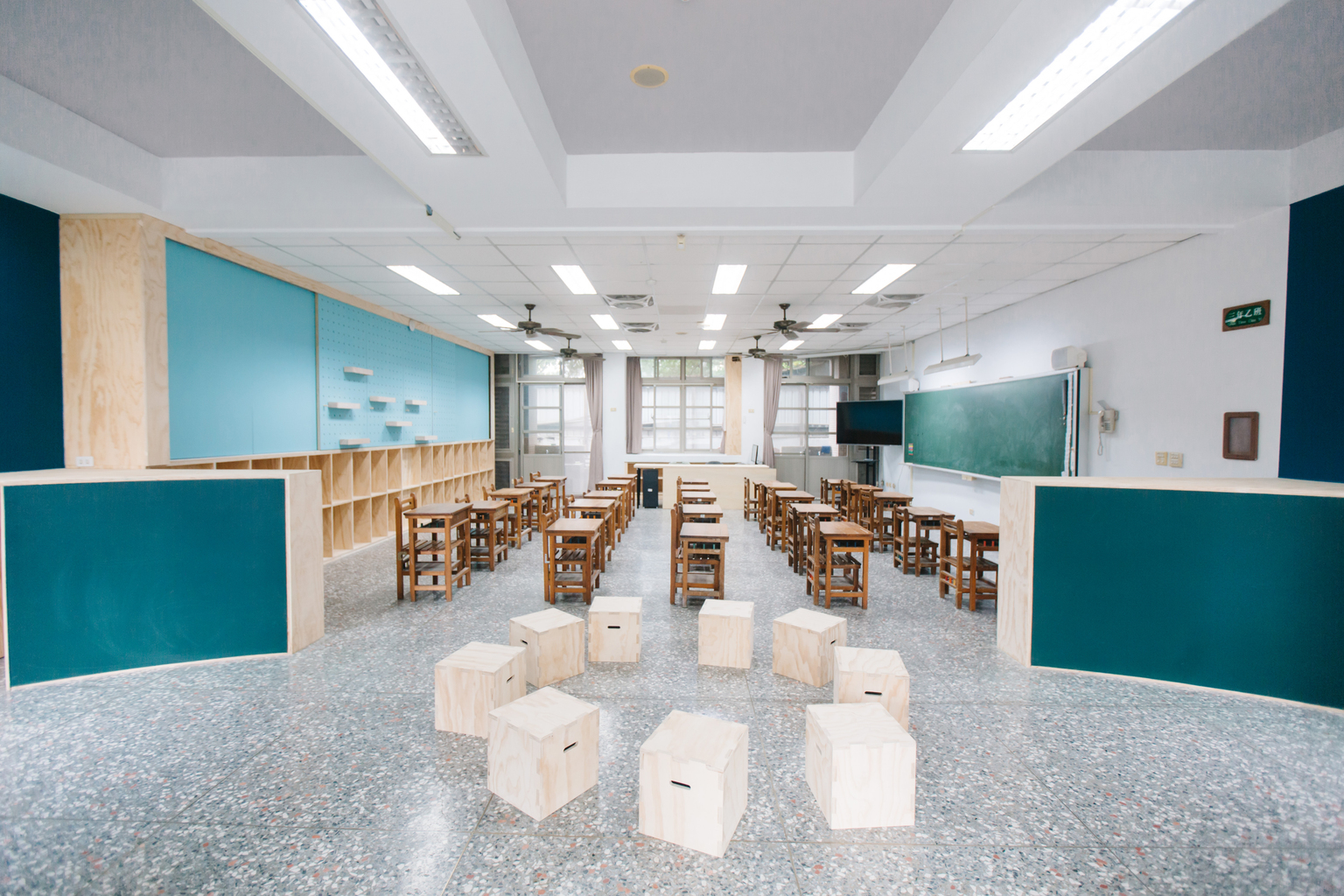 水越設計曾在一場工作坊中,詢問孩子喜歡在什麼樣的環境裡上課,並讓他們實際動手,打造出自己想要的上課環境。出乎意外的是,學生一聽之下,立刻把課桌椅搬到外面,開始打掃,甚至反過來詢問老師:「你那邊要不要打掃?」、「有些書堆好久了都沒有用到,要不要丟掉?」